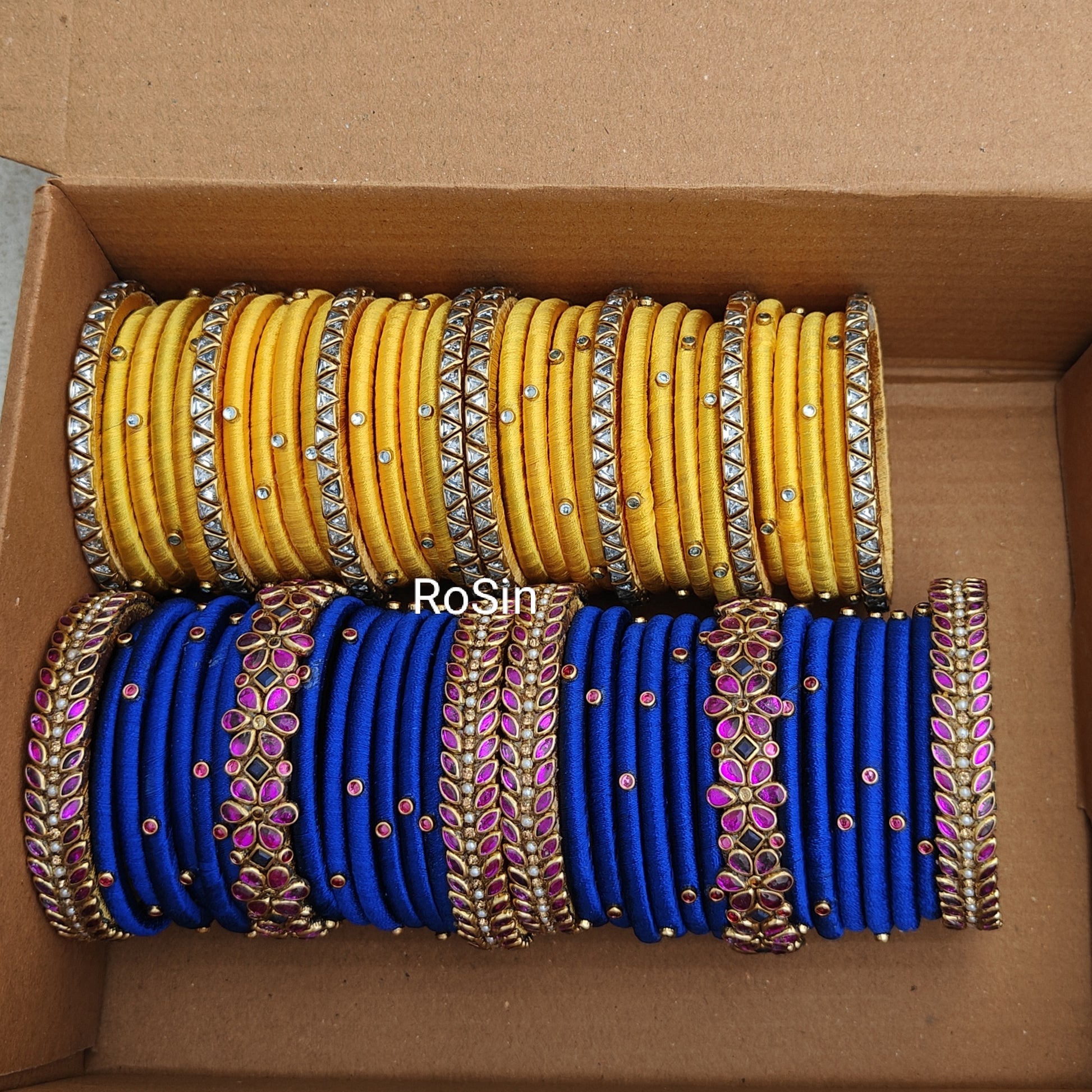 Indulge in timeless elegance with our Elegant Thread Bangles Set. Each bangle is delicately wrapped in colorful threads, creating a charming and sophisticated look. Perfect for both casual and formal occasions, this set adds a touch of refinement to any outfit.