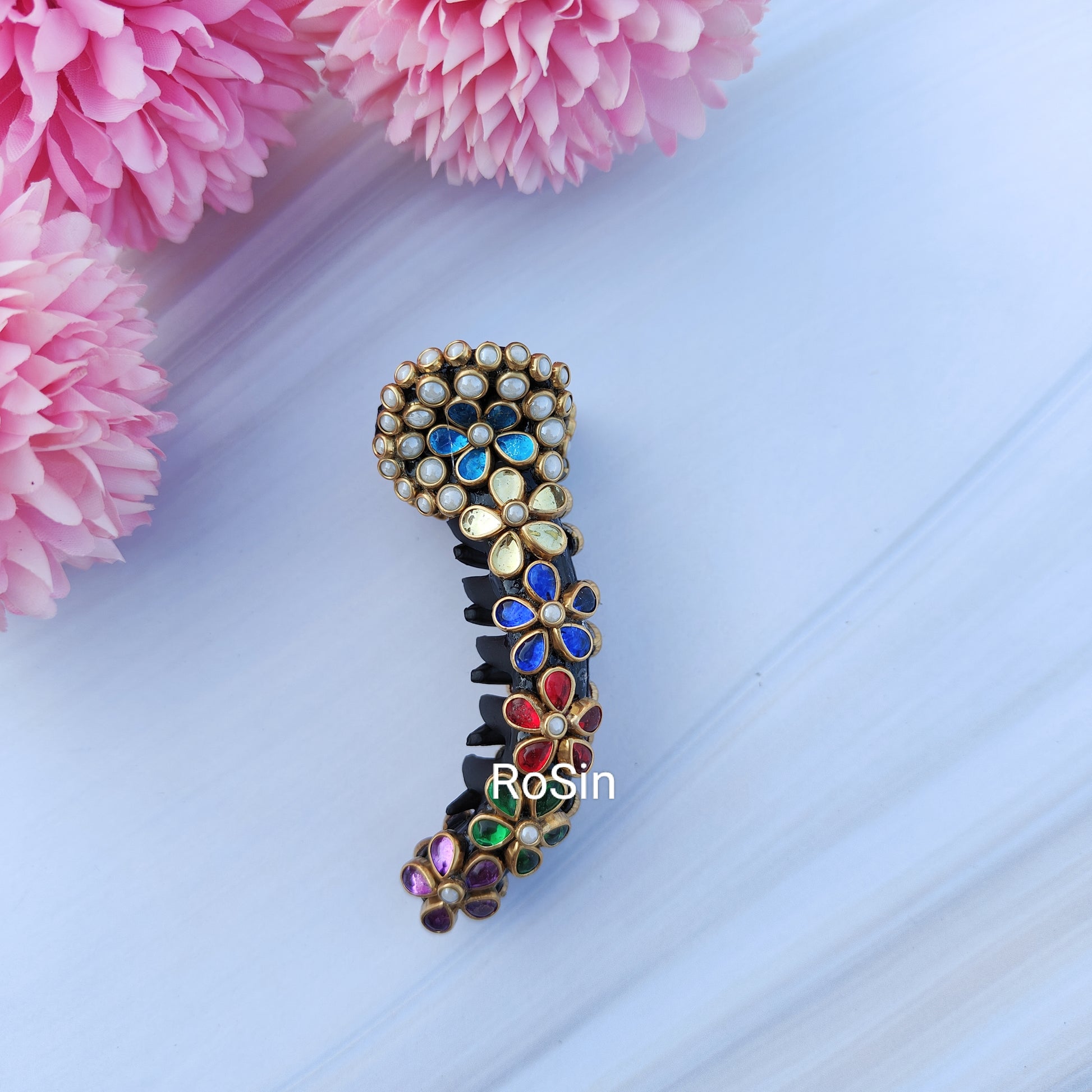 This floral multicolour hair clip adds a touch of elegance to any hairstyle. The intricate floral design is crafted with vibrant colors, making it a versatile accessory for any occasion. Its strong clip ensures a secure hold, making it perfect for everyday wear or special events.