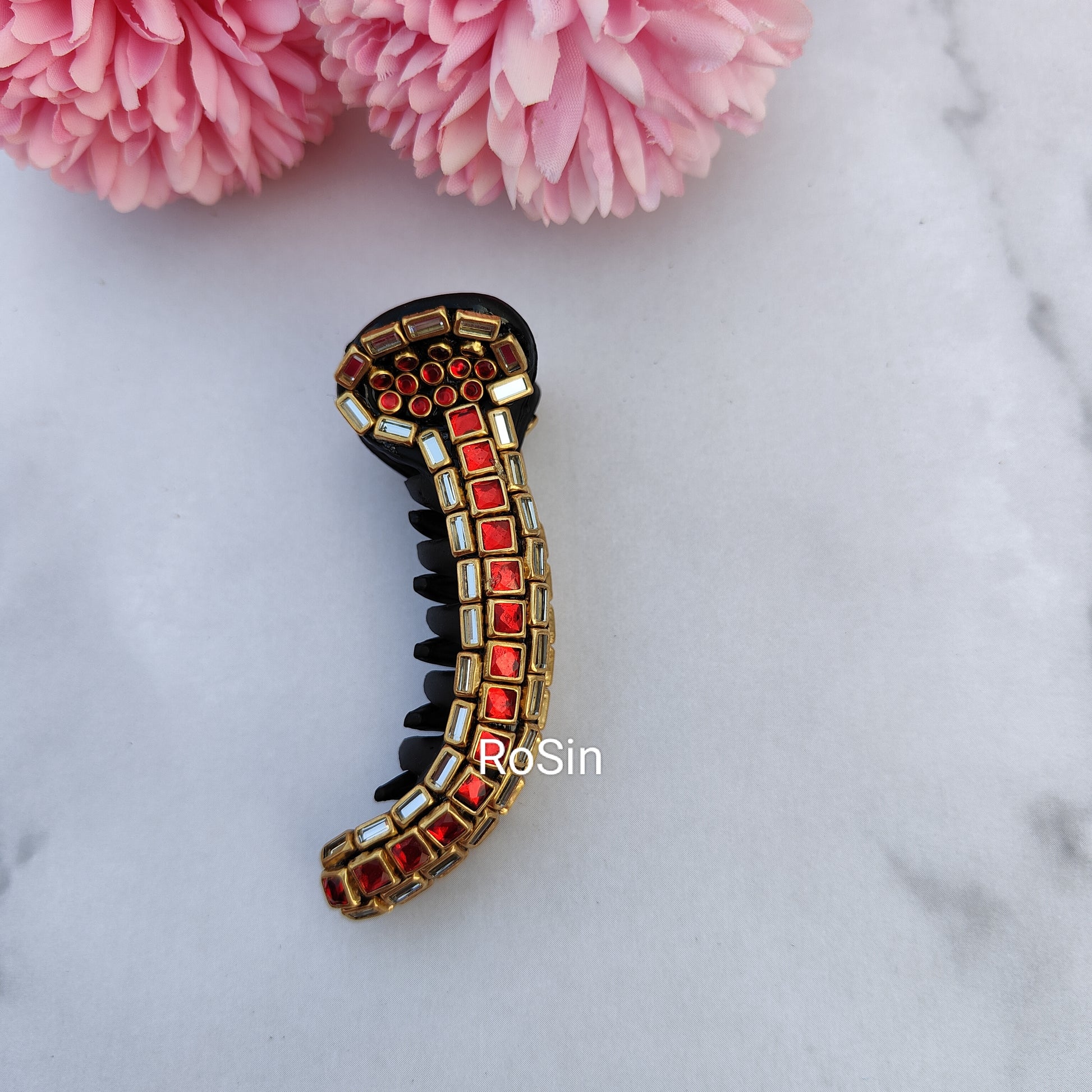 The Red threeline hair clip is a stylish and practical accessory that will elevate any hairstyle. Made from high-quality materials, this hair clip is durable and easy to use. Its unique design adds a touch of elegance to any look. Perfect for everyday wear or special occasions.