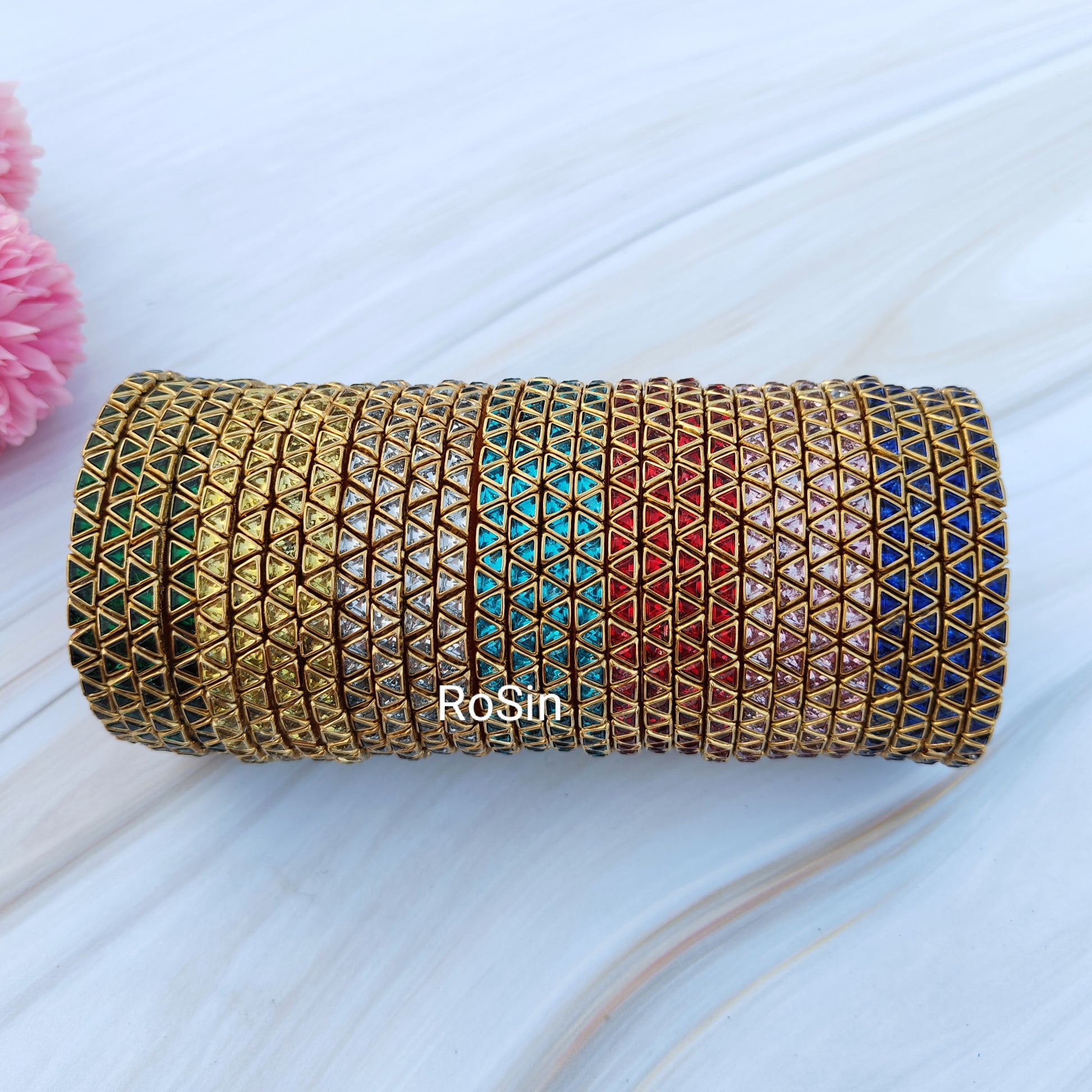 Expertly crafted with a modern touch, our Triangle single line bangles exude elegance and sophistication. Made from premium materials, these bangles offer a subtle yet striking addition to any outfit. Elevate your style with the sleek and minimalistic design of our Triangle single line bangles.