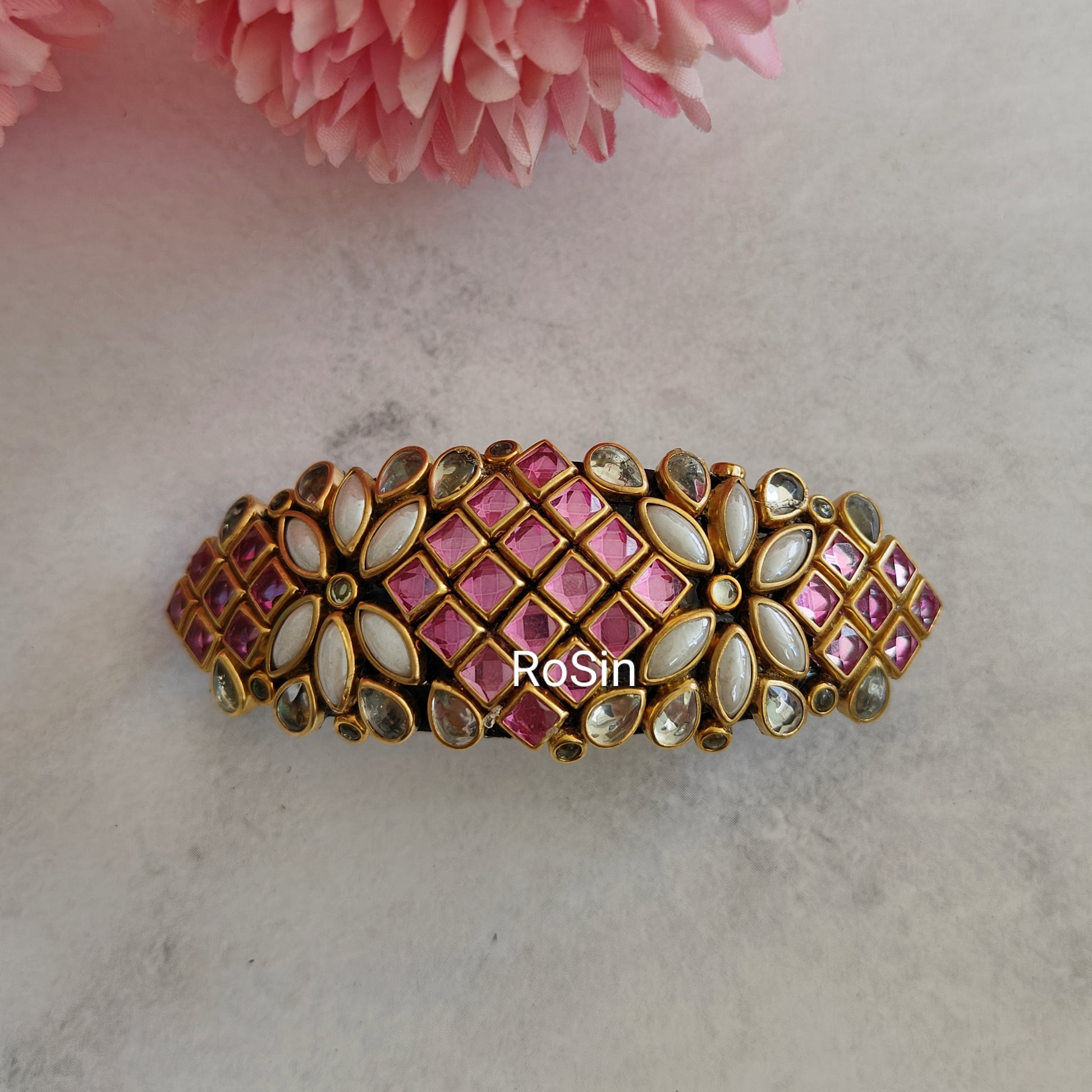 These hair pins are crafted in a beautiful combination of baby pink and pearl white. The delicate hues add a touch of elegance to any hairstyle. Created with precision and attention to detail, they make for a whimsical addition to any hair accessory collection.