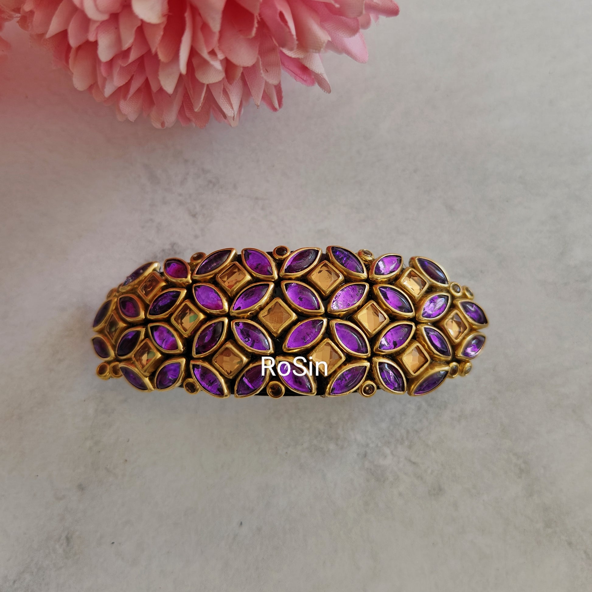 This purple and gold hair band is perfect for adding a touch of elegance to any hairstyle. Made with high-quality materials, it offers both functionality and style. The purple and gold colors add a subtle yet eye-catching contrast, making it a must-have accessory for any fashion-forward individual looking to elevate their look.