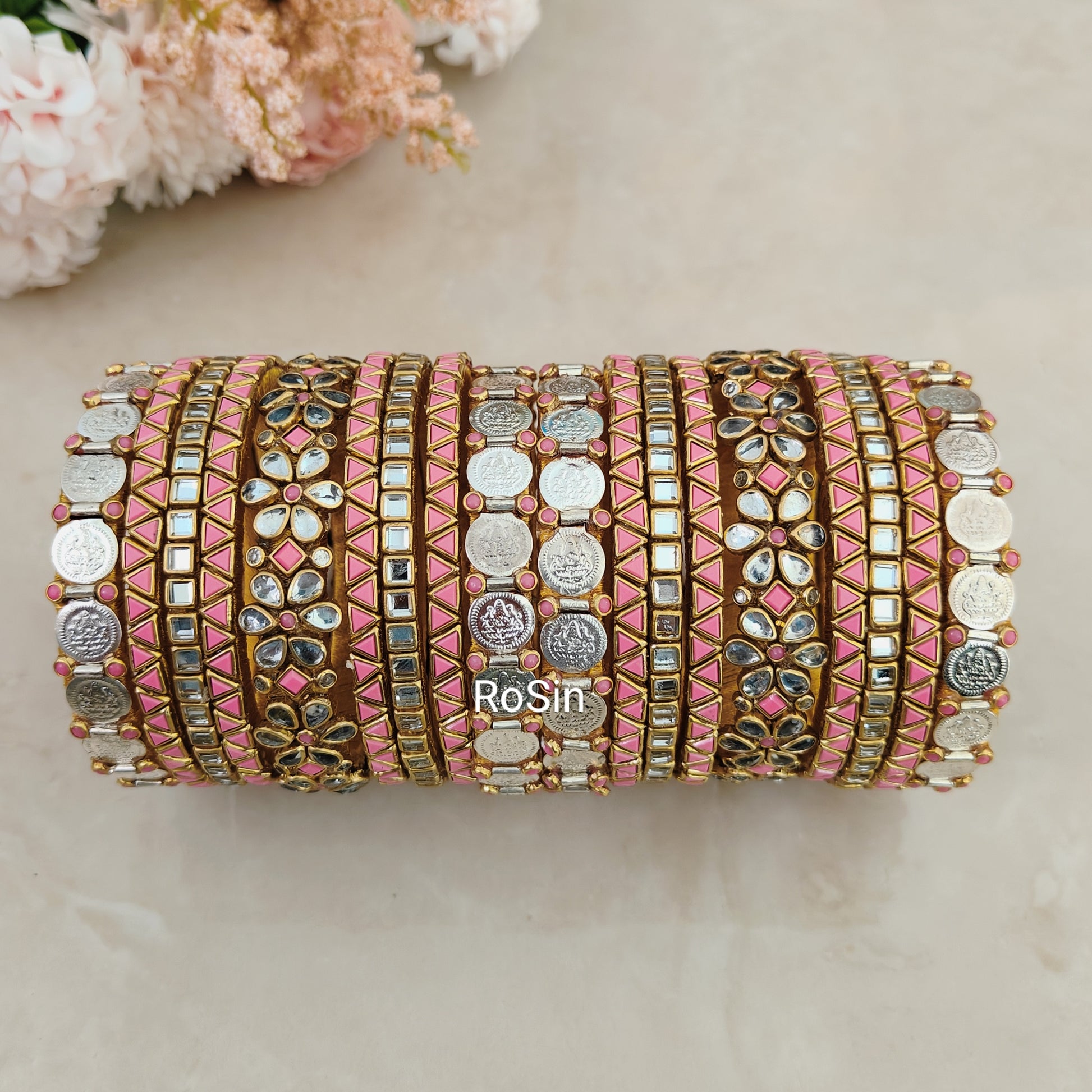 Coin floral silver and baby pink