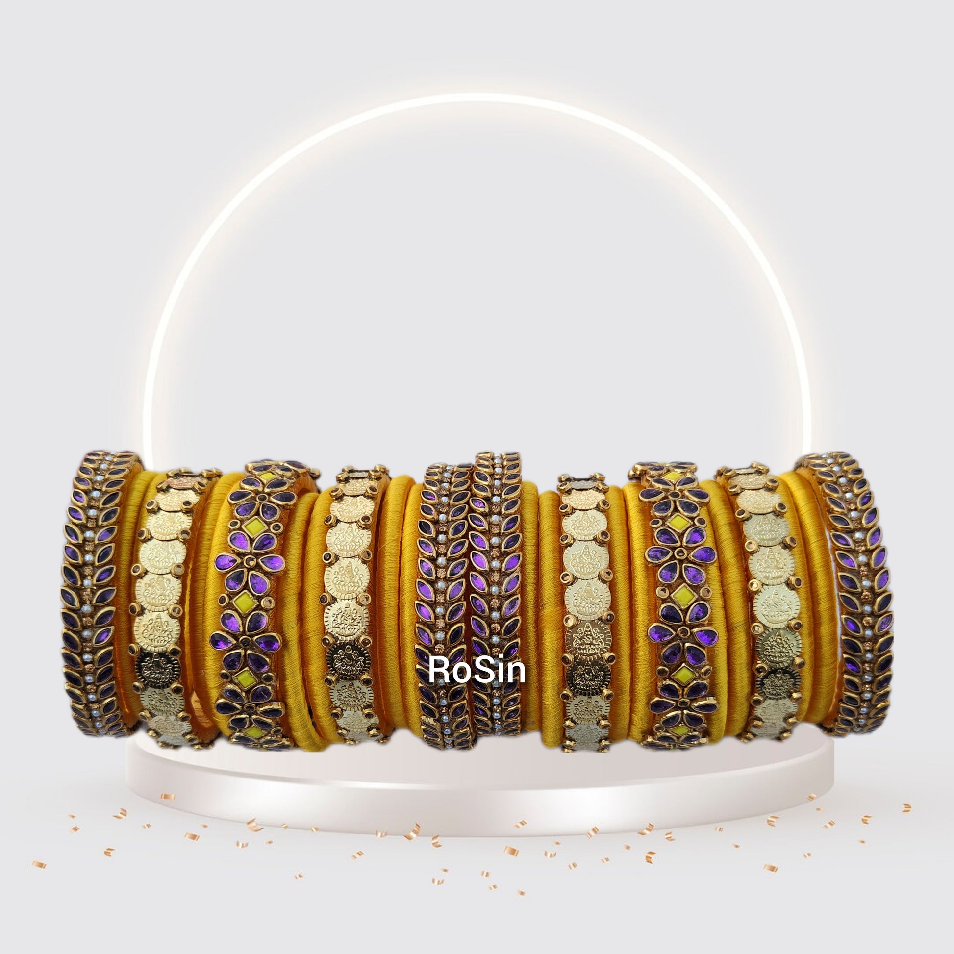 Add a touch of elegance with our Floral Leaf Purple and Yellow Bangles. These beautiful bangles feature a delicate floral leaf motif in vibrant shades of purple and yellow. Made with high-quality materials, our bangles are the perfect accessory to elevate any outfit.