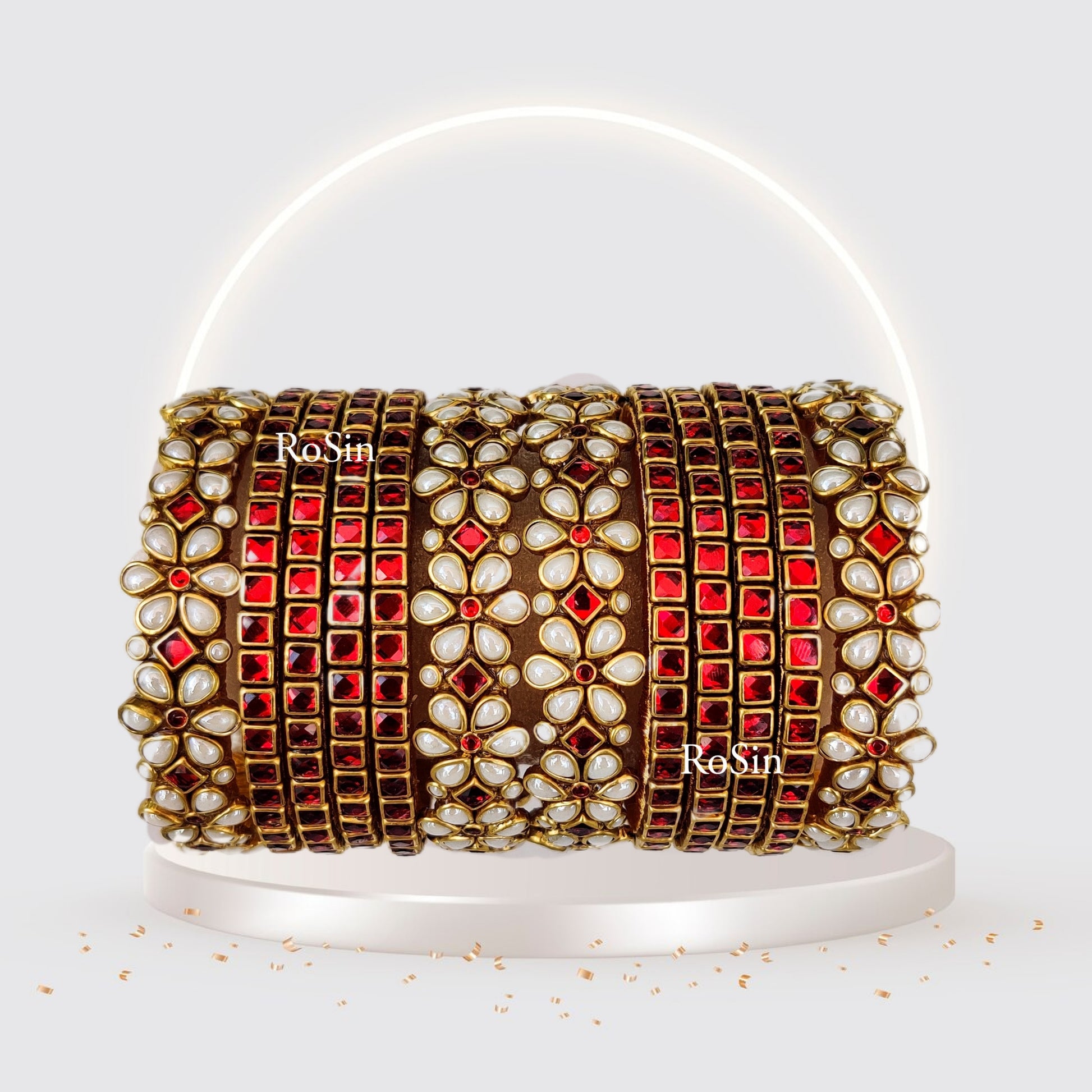 Add a touch of elegance to your outfit with our Floral Pearl White and Red Bangles. Made with intricate floral designs and adorned with pearls, these bangles will elevate your style and add a touch of femininity to your look. Perfect for any occasion, these bangles are a must-have for any jewelry collection.