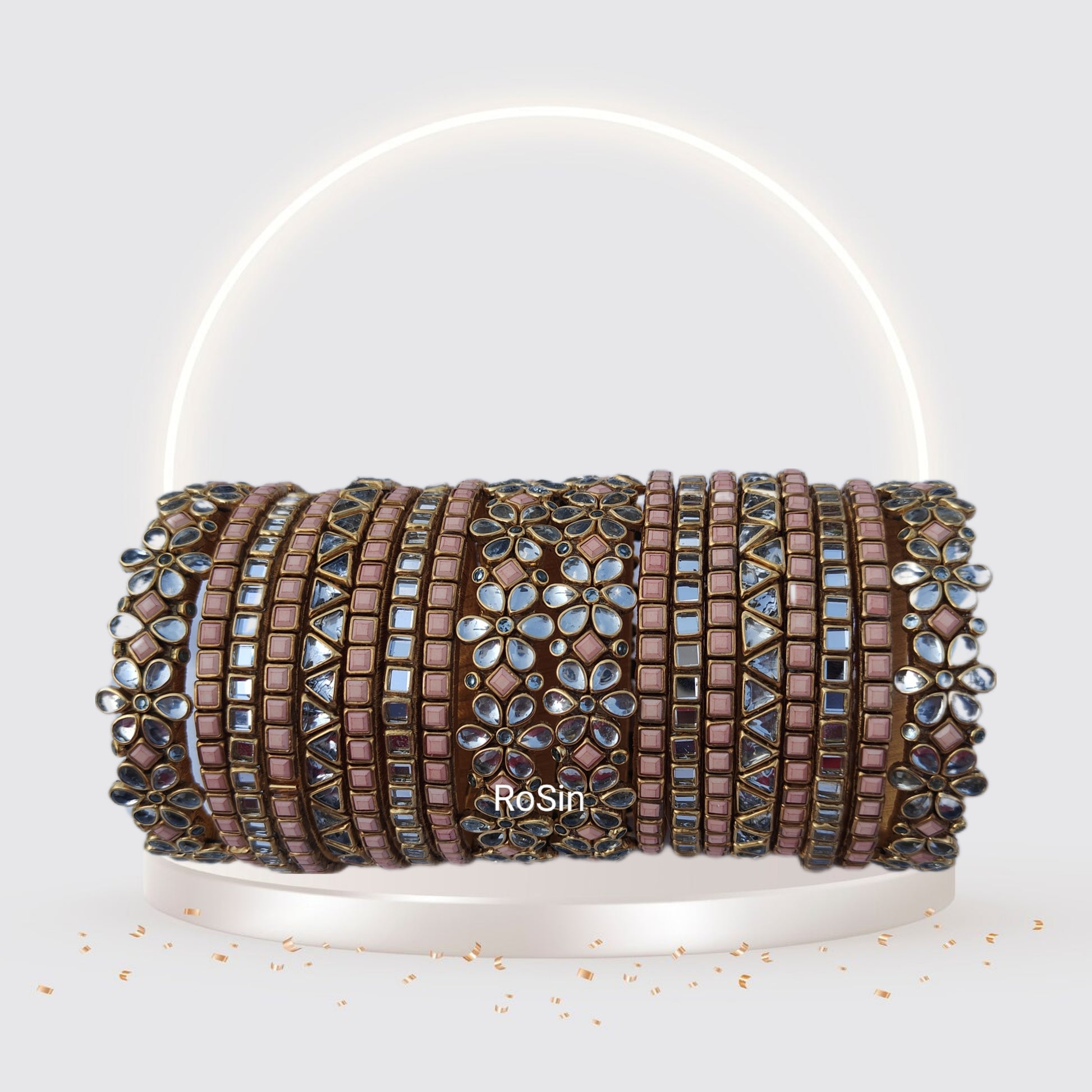 Adorn your wrists with our Floral Silver and Peach Bangles. Delicately crafted with floral motifs, these bangles exude elegance and charm. The soft peach tones complement the shining silver, creating a graceful and feminine look that is perfect for any occasion.