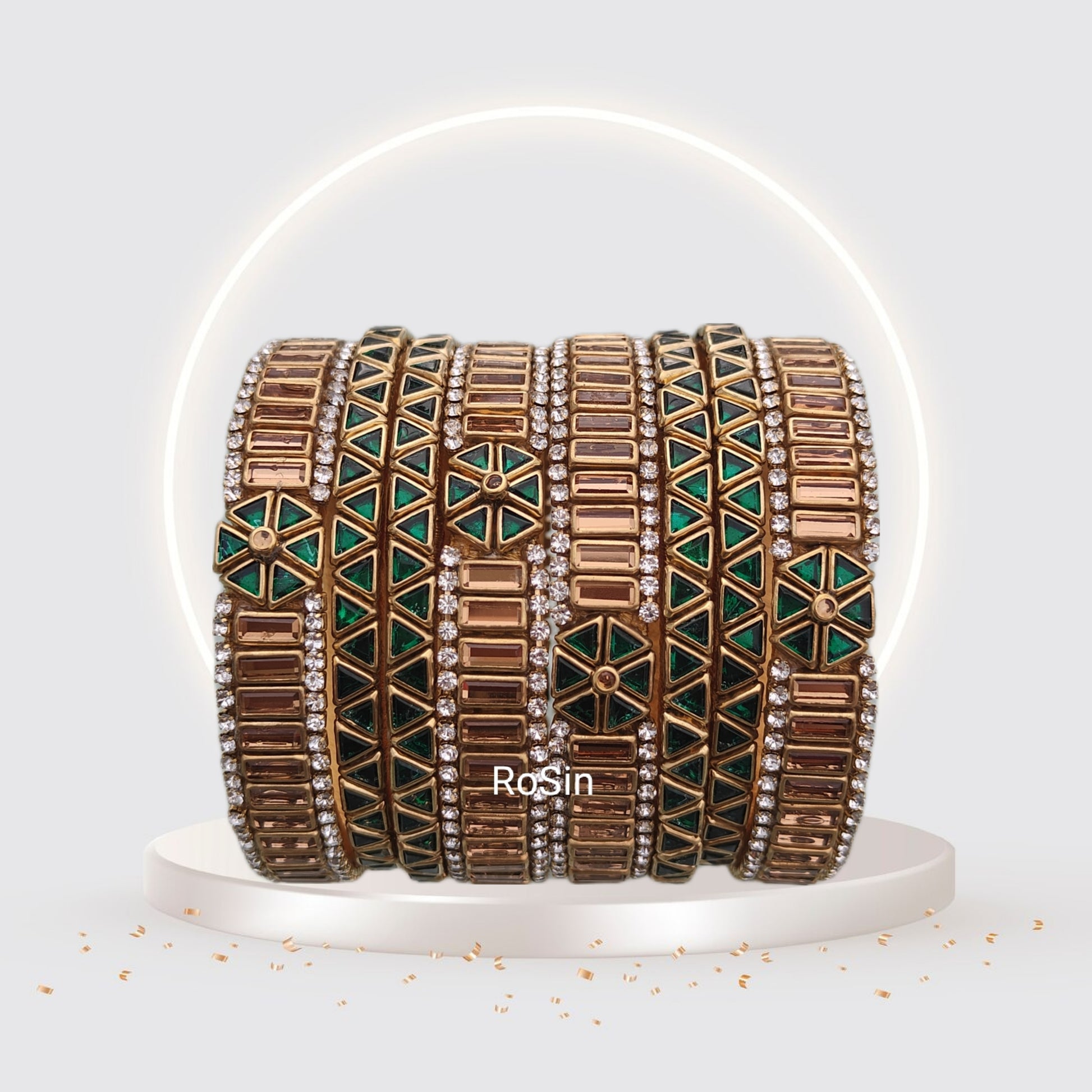 This elegant bangle features a stunning combination of tulip gold and dark green, creating a sophisticated and timeless design. The vibrant colors and high-quality materials make this bangle a perfect addition to any outfit, adding a touch of luxury and elegance. Bring your wardrobe to the next level with this beautiful bangle.