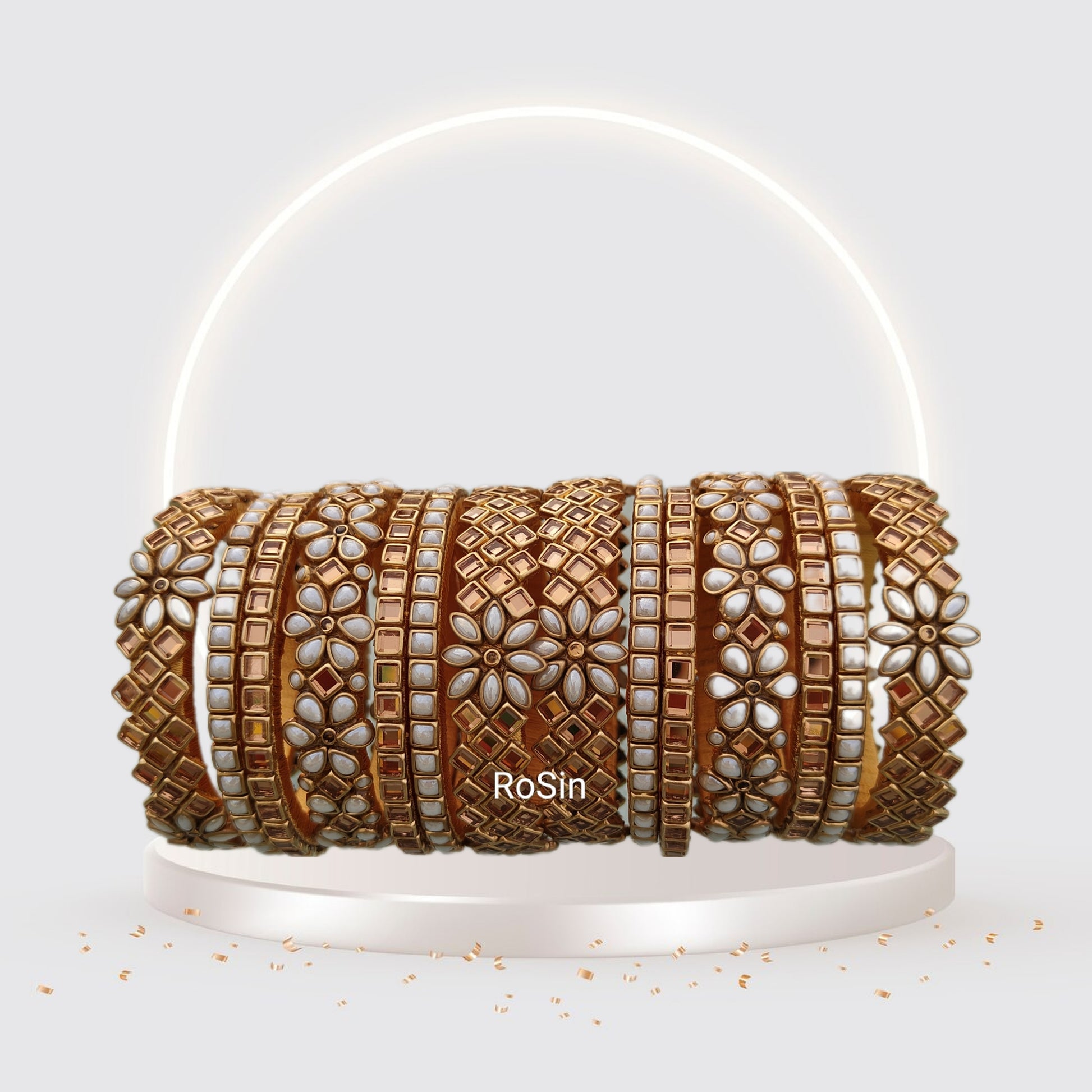This Zigzag bangle is the perfect combination of elegance and style. Made with stunning gold and pearl white, it will add a touch of sophistication to any outfit. Its zigzag design is eye-catching, making it a versatile accessory for any occasion. Elevate your look with this sleek bangle.