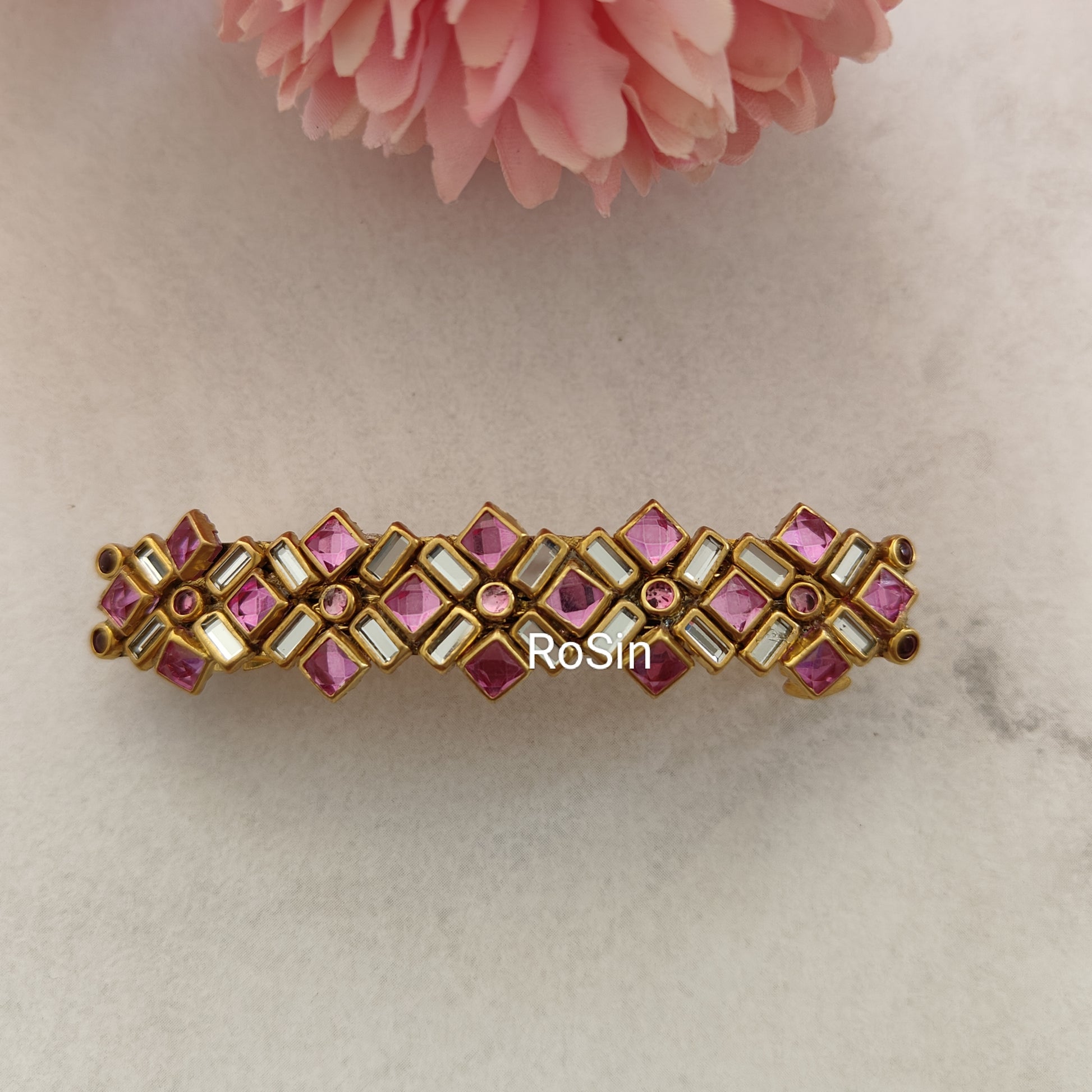 Elevate your hairstyle with the addition of this delicate hair accessory in a soft and feminine baby pink hue. Perfect for adding a subtle and elegant touch, this clip is a must-have for any look.