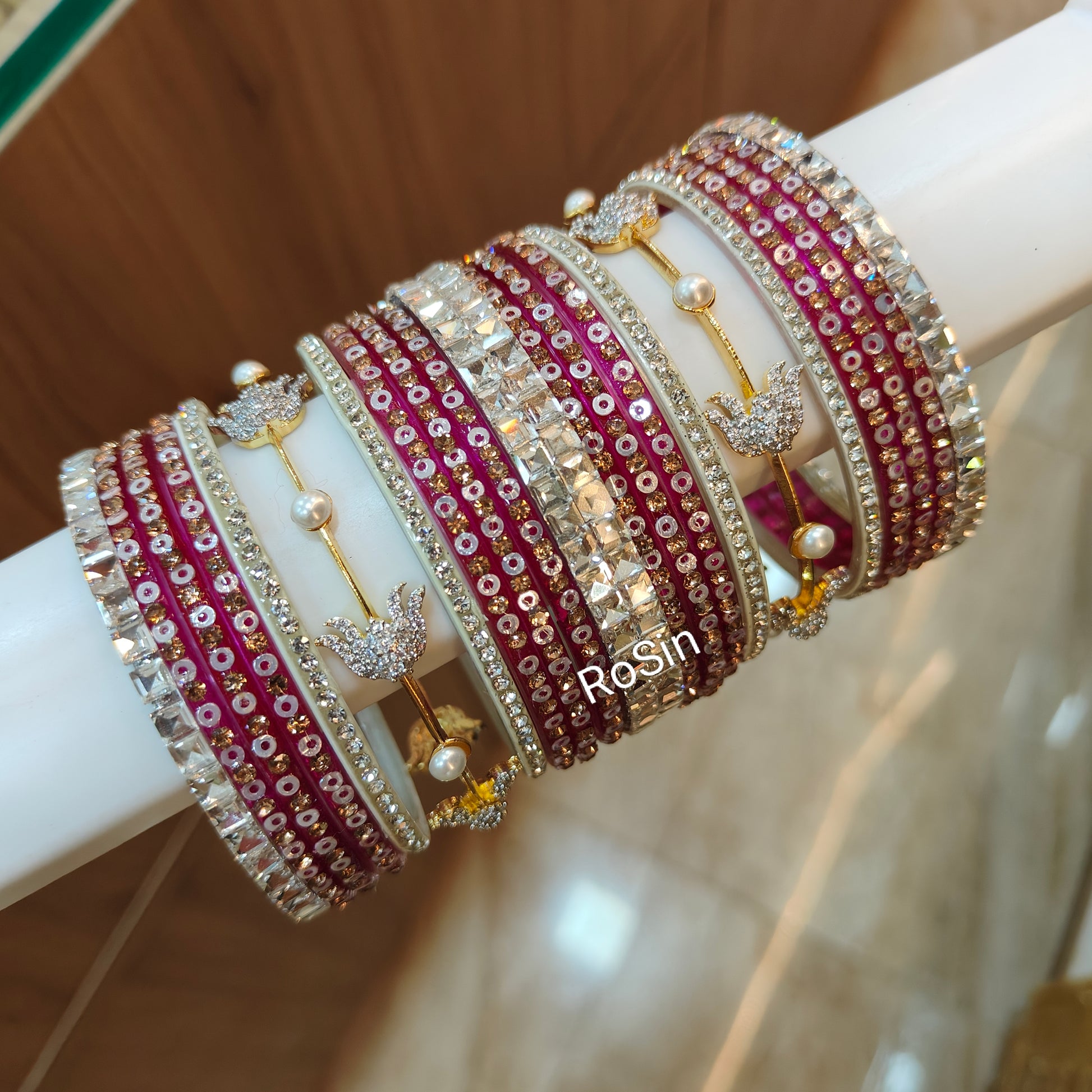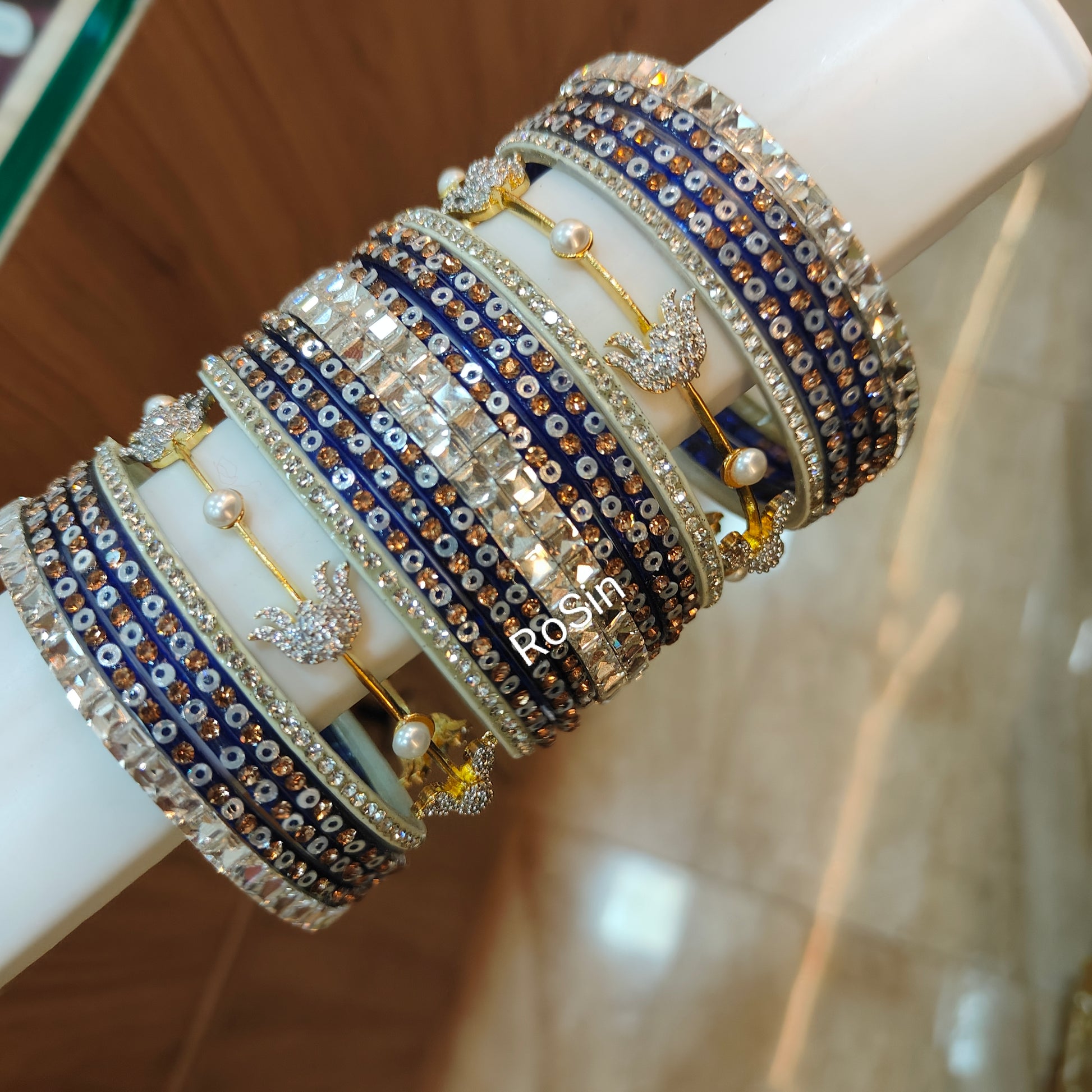 Diamond replica glass mixed set (22 bangles)