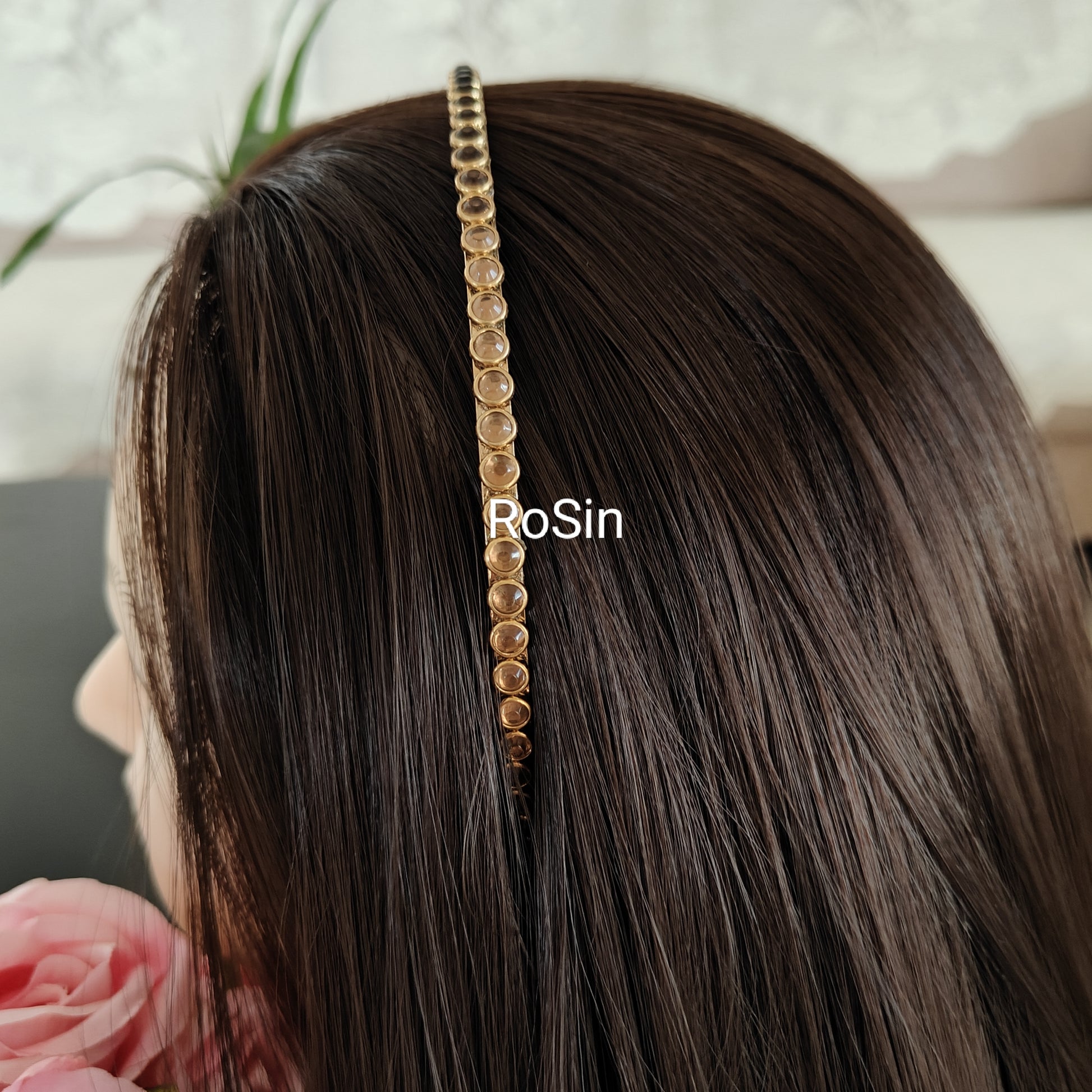 Upgrade your style with our Gold round headband. Made from high-quality materials, this headband features a sleek and elegant design that will elevate any outfit. Perfect for any occasion, this headband adds a touch of luxury and sophistication to your look. Treat yourself to the ultimate fashion accessory.