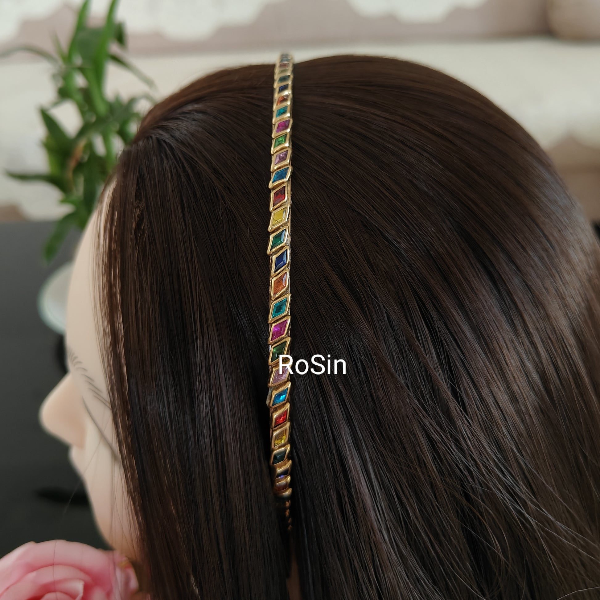 Add a pop of color and sparkle to your outfit with our Multicolour Diamond Headband. Made with vibrant, glittering diamonds, it's the perfect accessory for any occasion. Elevate your style and make a bold statement with this headband.