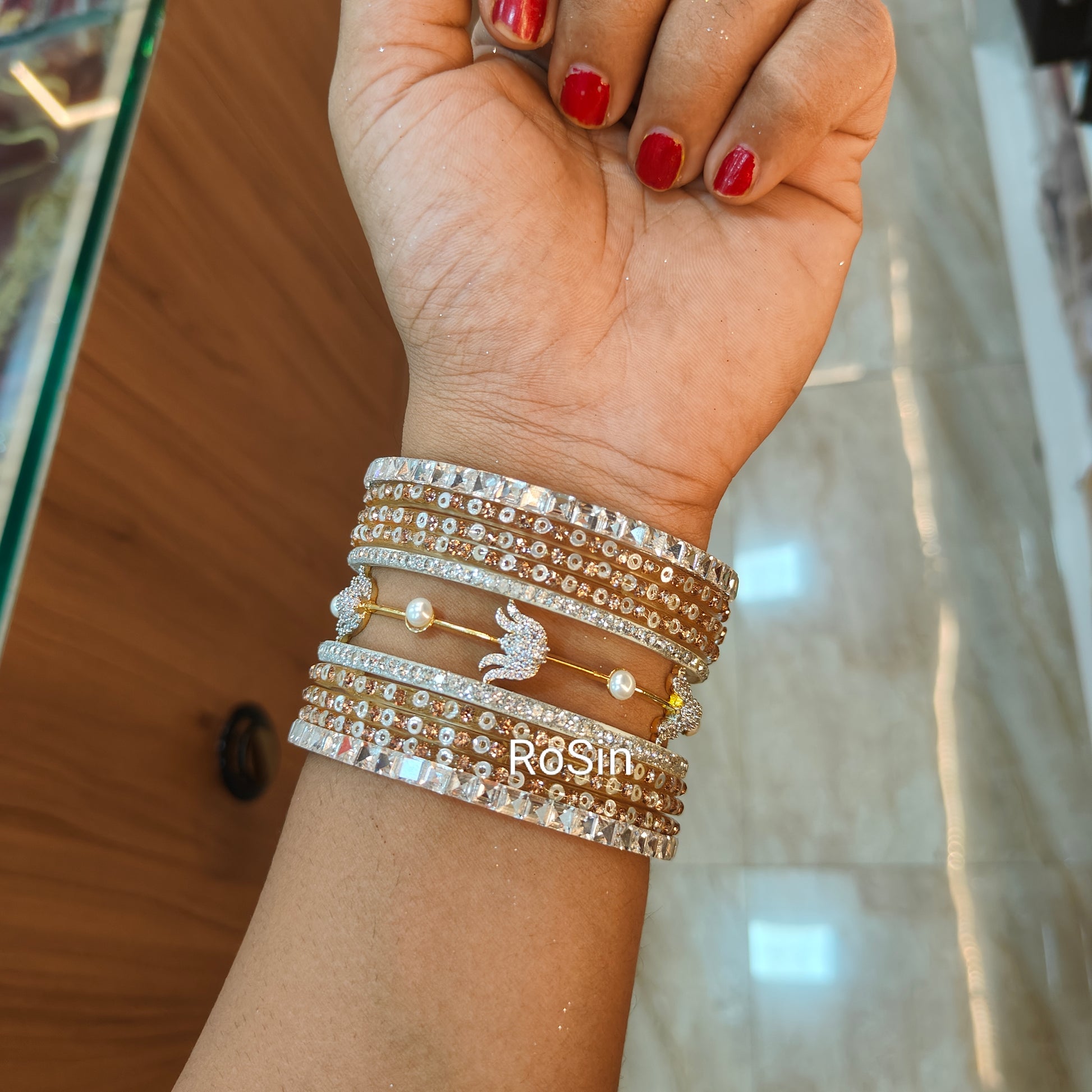 Diamond replica glass mixed set (22 bangles)