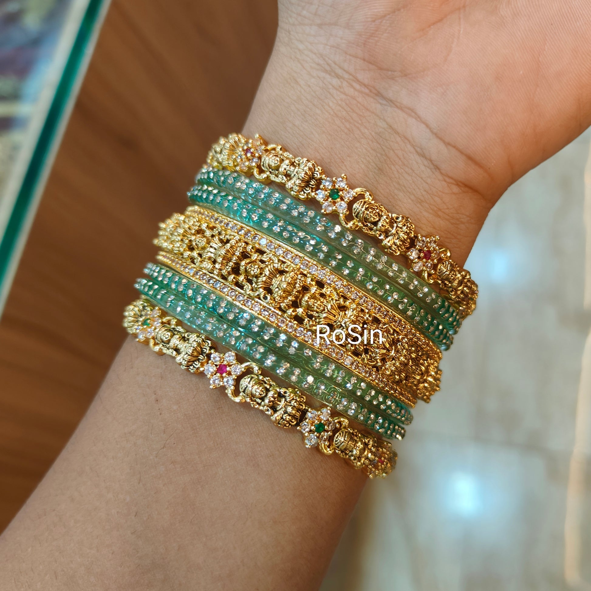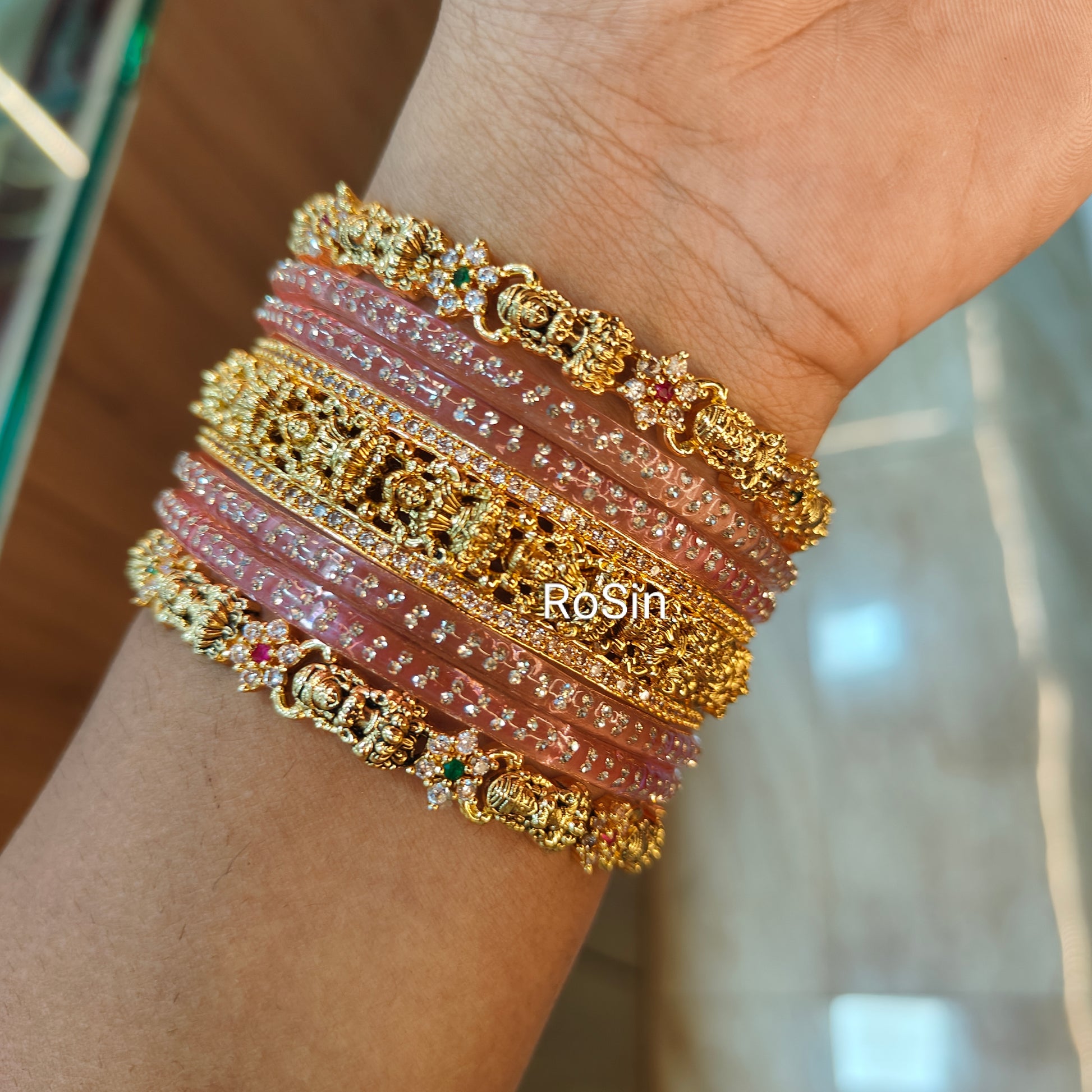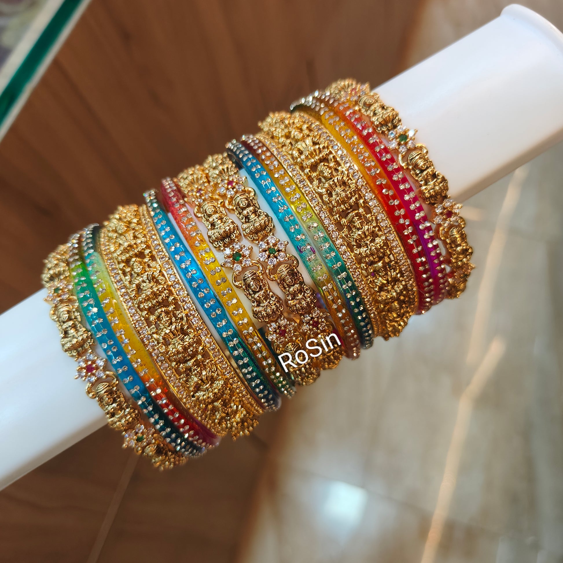Vivaha Nagas temple bangles with glass mixed (1 set)