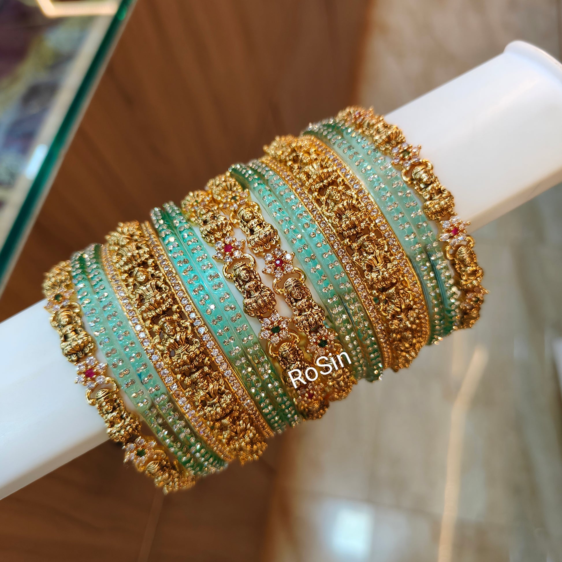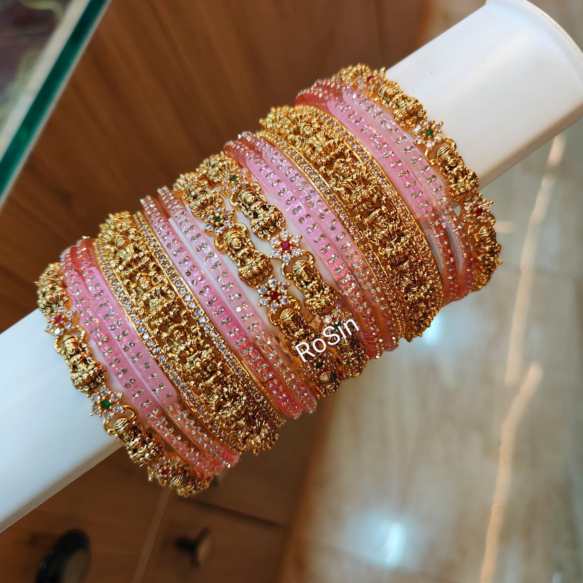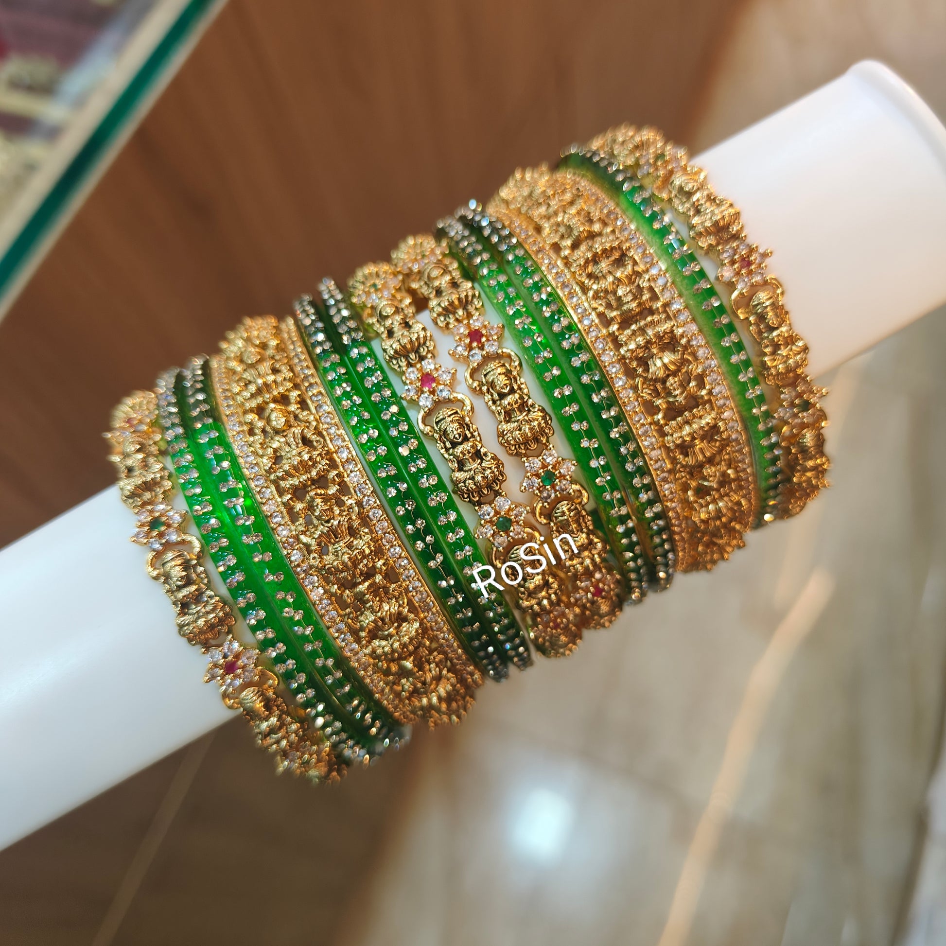 Vivaha Nagas temple bangles with glass mixed (1 set)