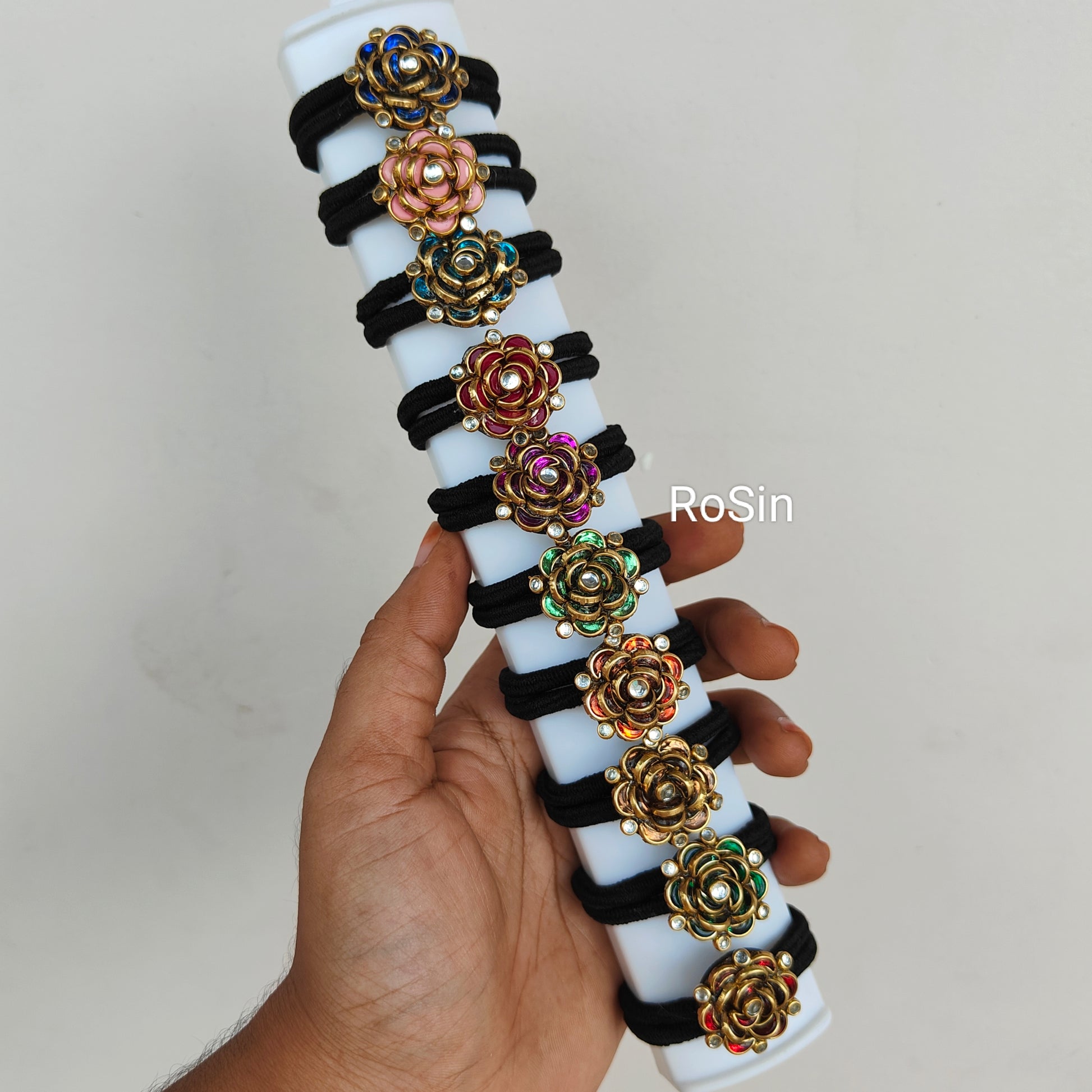 Rose kundhan rubber bands (pack of 10)