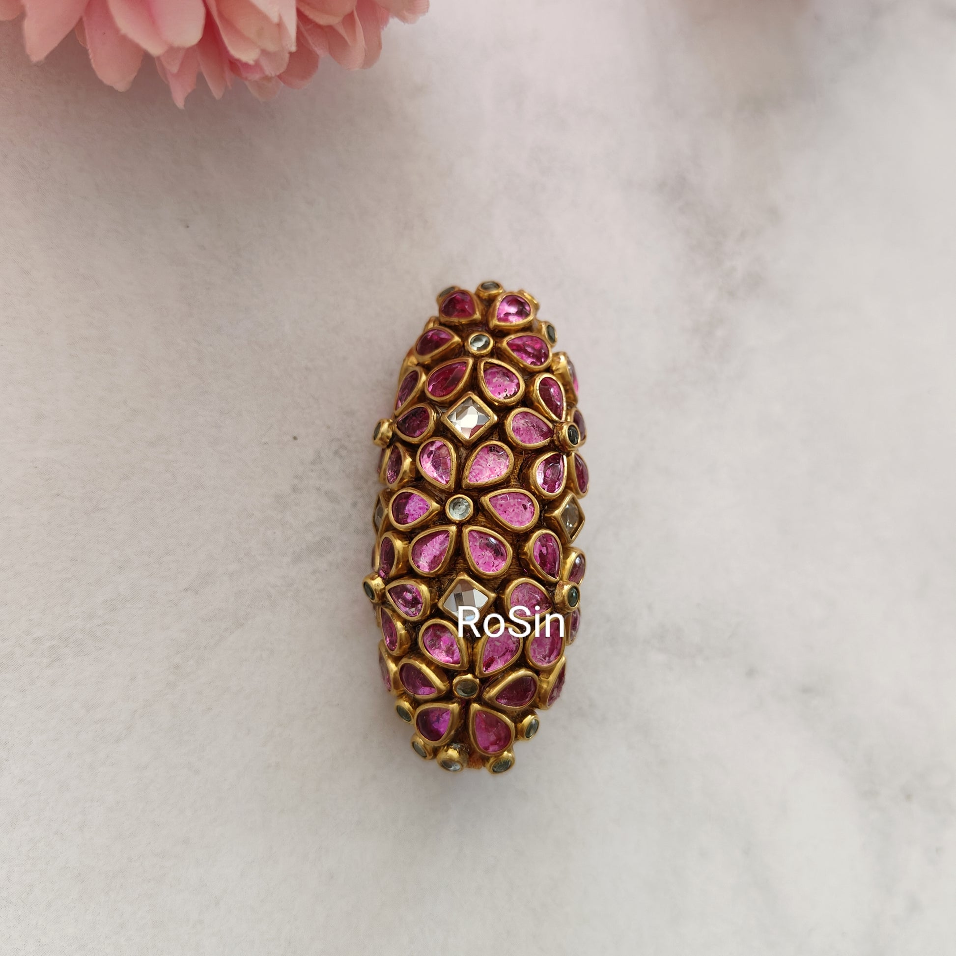 Add a touch of femininity to your saree with our Floral Baby Pink Saree Pin. Featuring delicate floral motifs in a soft pink hue, this pin is the perfect finishing touch to your ensemble, ensuring your saree stays in place with elegance.
