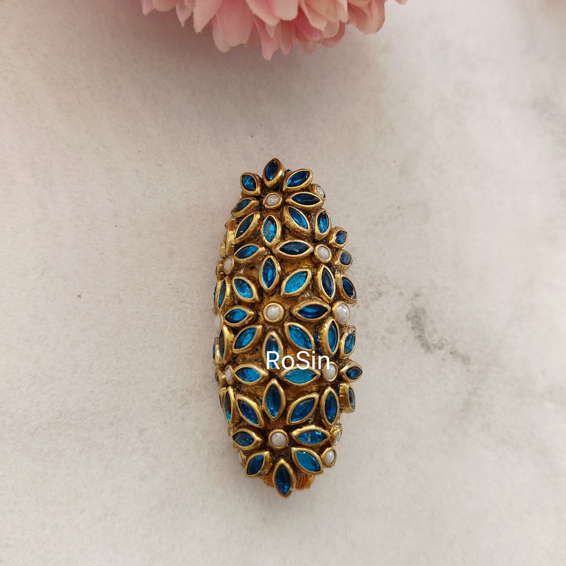Add a touch of grace to your saree with our Lily Sky Blue Saree Pin. Crafted delicately, this pin features a lily-inspired design in a serene sky blue hue, exuding elegance and charm. Perfect for accentuating your saree drape with a hint of sophistication, it's the ideal accessory for any occasion, from formal events to casual gatherings.