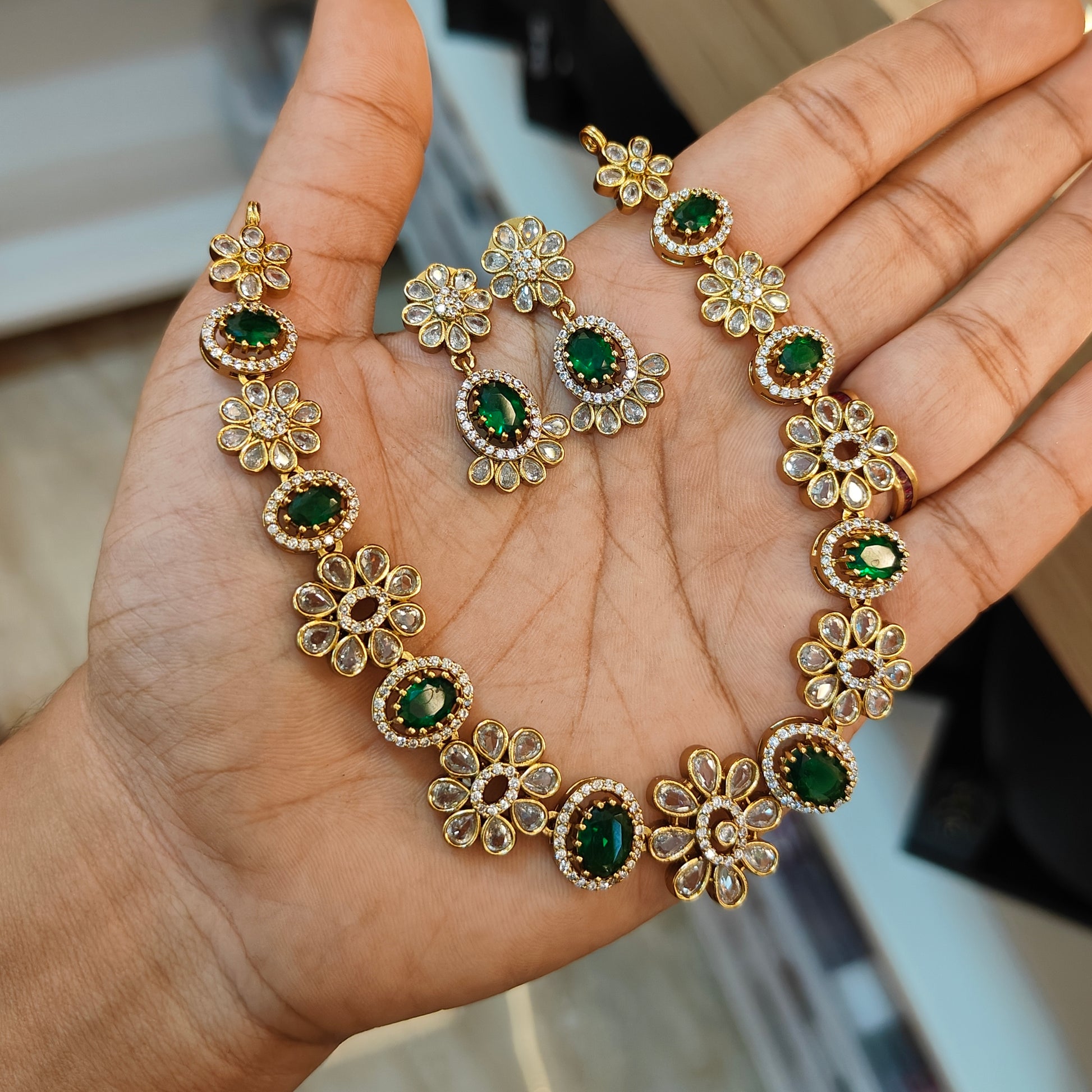 Adorn yourself with our Green and White Ad Stone Necklace, a stunning blend of elegance and sparkle. Featuring dazzling green and white ad stones arranged in a captivating design, this necklace adds a touch of glamour to any look. Perfect for special occasions or adding a pop of color to your everyday attire, it's a must-have accessory for those who love to shine.